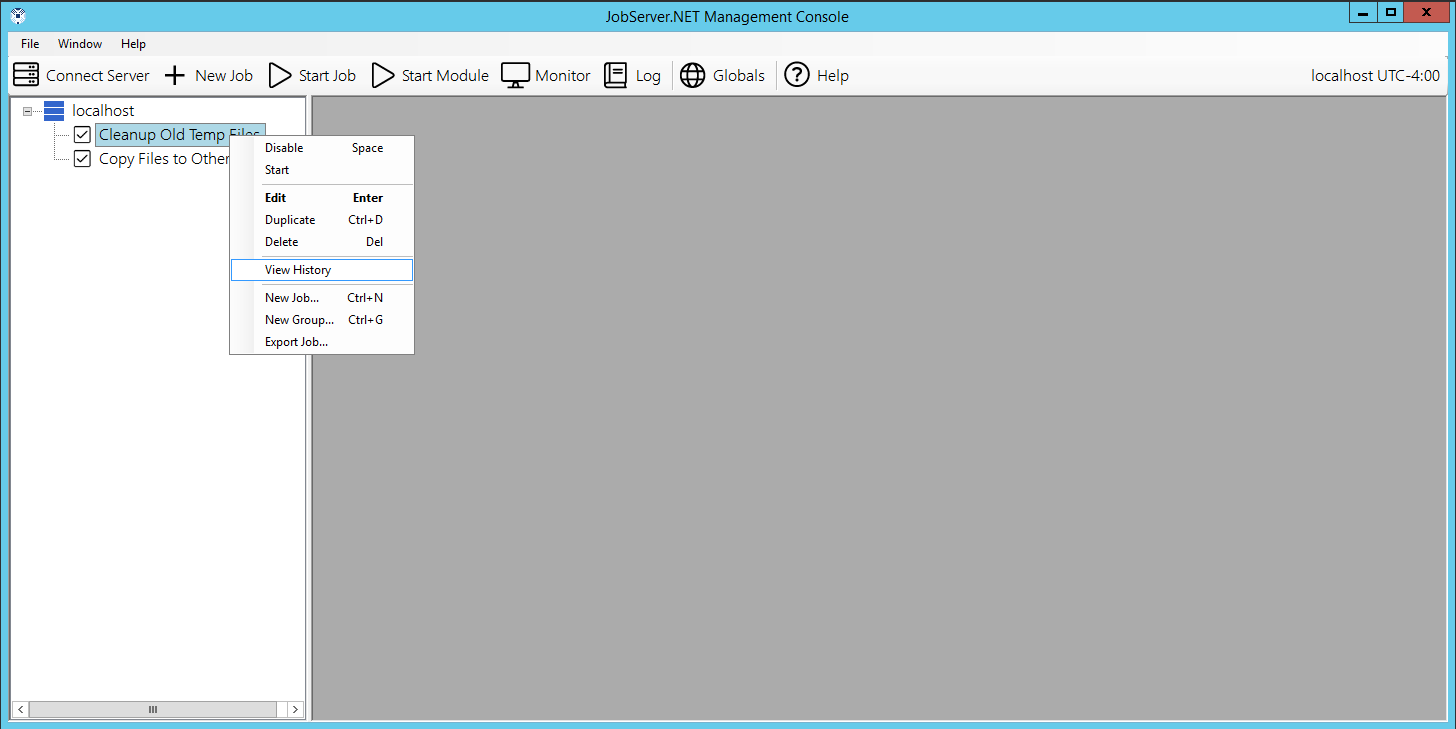 Selecting this will open the Job History grid which shows all the times in which he job has been run.
