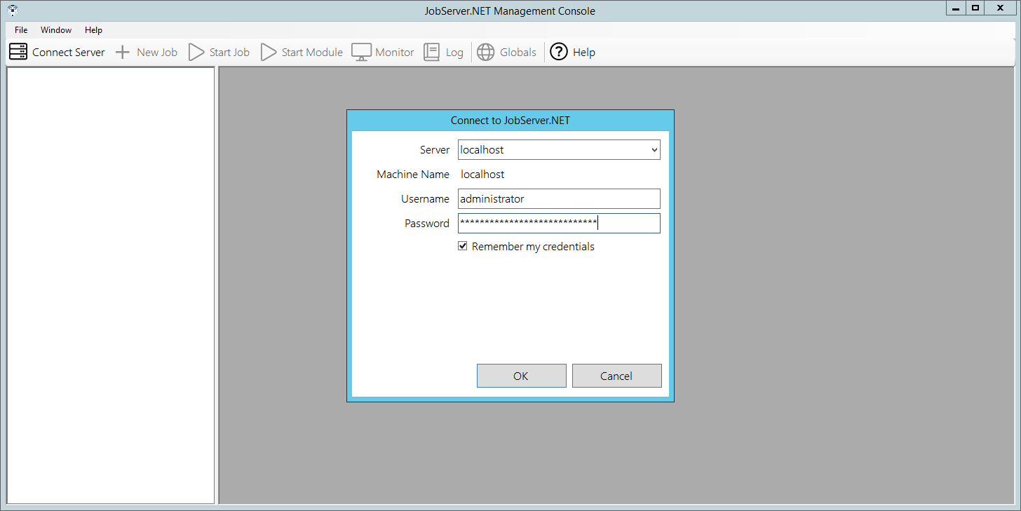 For machines that are not domain members, then your login credentials are your local machine-based login credentials. This means you just use the same login and password you would use to login to an administrator account on the machine. The same JobServer.NET based groups can be defined on a local machine’s accounts if you prefer to not use the administrator account(s).